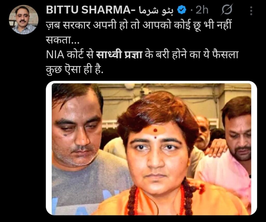 और इसके ठीक एक दिन बाद ये फैसला सुनाया गया। इस चीज लेकर लोगों ने Twite भी किया है की “जब सरकार अपनी हो तो आपको कोई छू भी नहीं सकता, NIA कोर्ट से Sadhvi Pragya के बरी होने का ये फैसला ऐसा ही कुछ लगता है”।